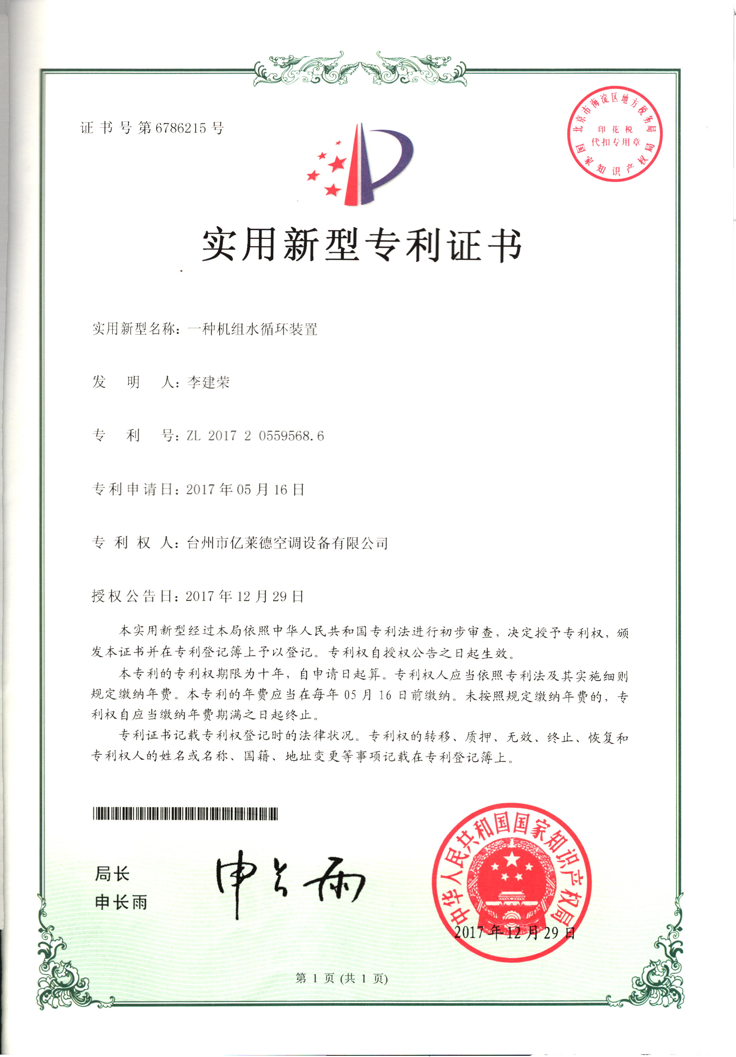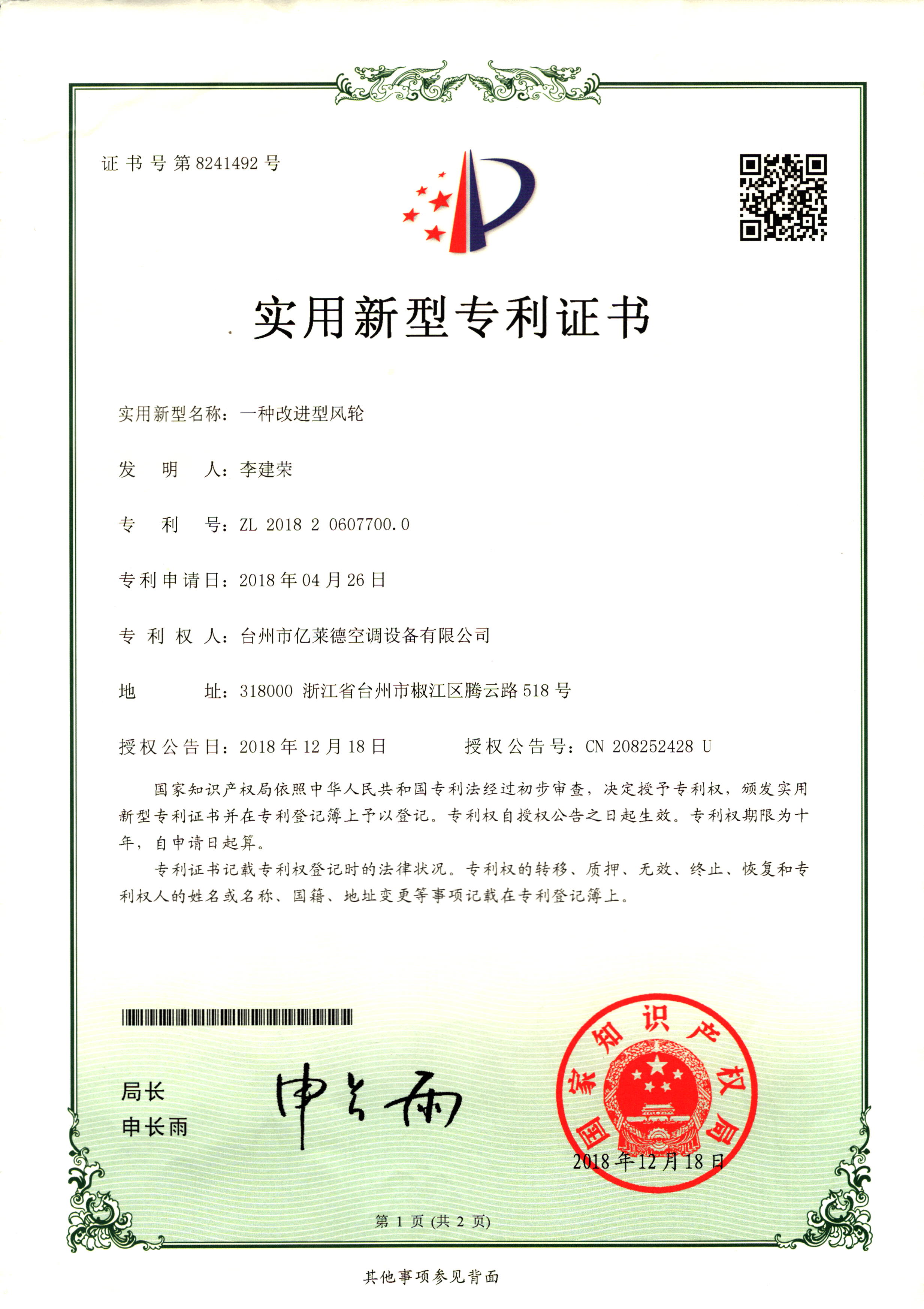 實用新型專利證書--一種改進(jìn)型風(fēng)...