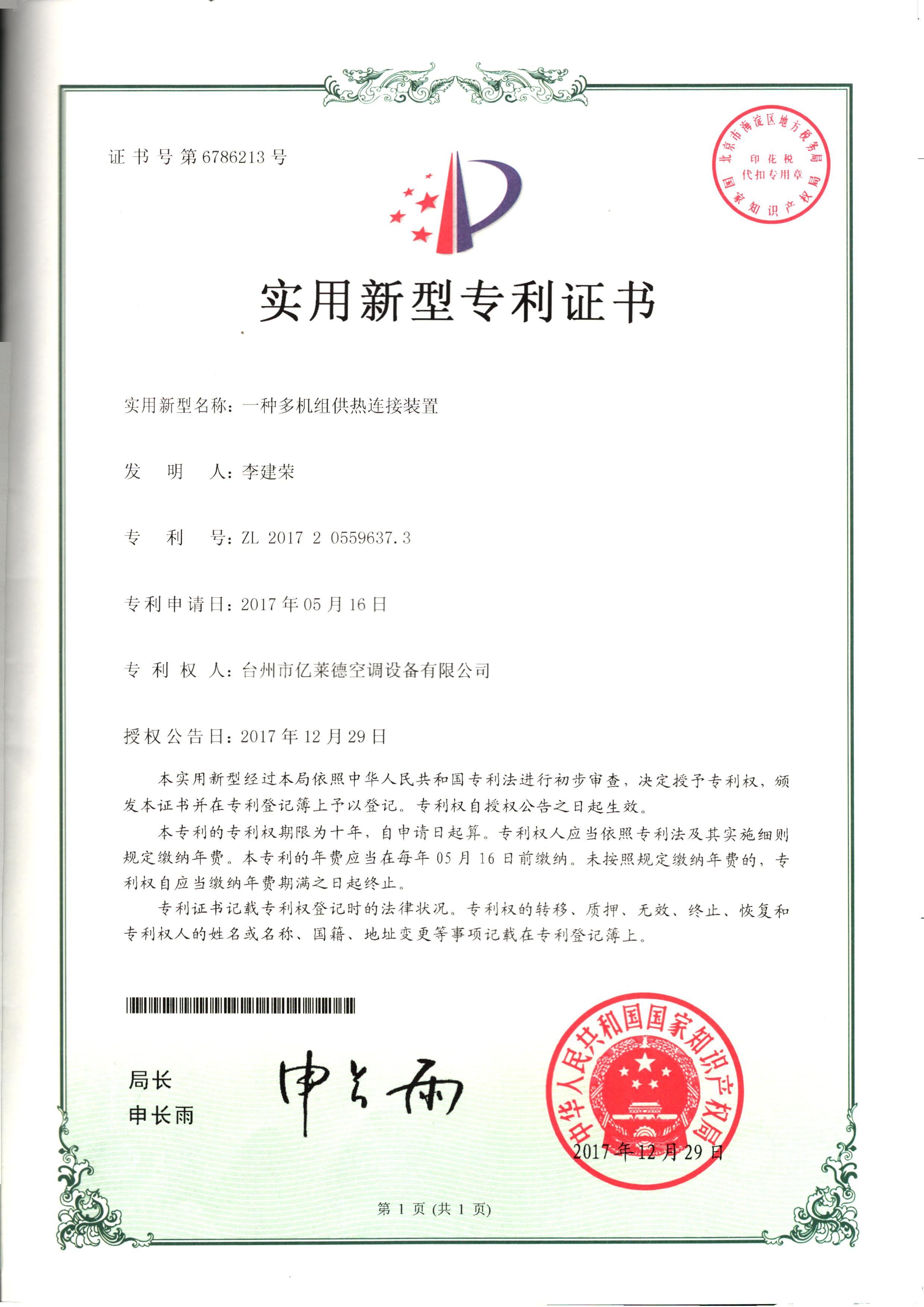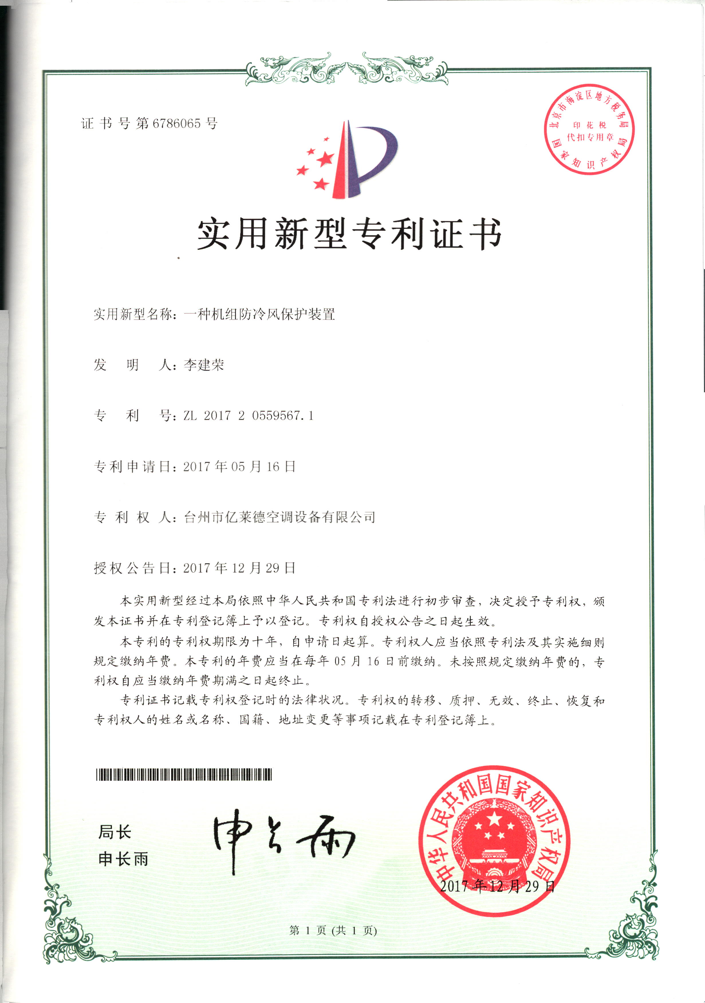 實用型專利證書--一種機(jī)組防冷風(fēng)...