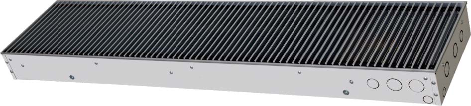 The fan powered floor convector can be bused for heating and cooling. The heat exchanging capacity is enhanced by forced air movement. It is installed flush with the floor, saving the space.